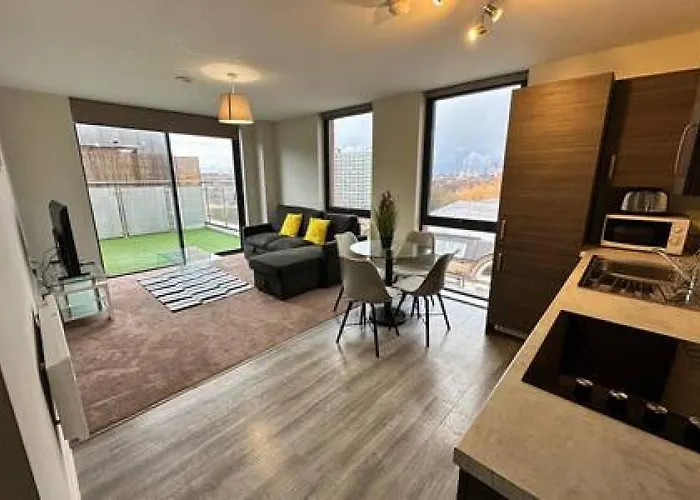 Het appartement bevindt zich in de Salford wijk van Manchester, op 10 minuten rijafstand vanaf het City of Manchester 'Etihad' Stadium. Old Trafford is bereikbaar binnen 3 km.